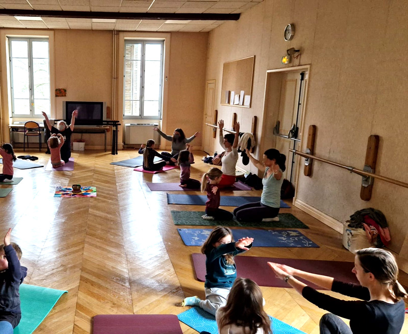 Ce sont des séances de yoga où il s’agit de faire découvrir le plaisir du yoga aux enfants – et aux adultes qui s’occupent d’eux, s’ils ne connaissent pas déjà – par des exercices simples et ludiques.
